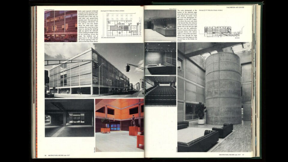 In celebration of the YCBA’s reopening, below is a lengthy assessment of the museum, published in Architectural Record’s June 1977 issue. The author is Vincent Scully, famed Yale professor of art history and a tireless advocate of Kahn, who championed the architect’s vision in—and outside—the lecture hall.