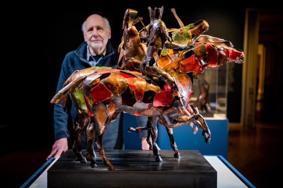 York artist and sculptor Harold Gosney with his sculpture The Four Horseman of the Apocalypse, 2016 – Copper and Perspex, part of his solo exhibition Materials and Making at York Art Gallery. Picture: James Hardisty.