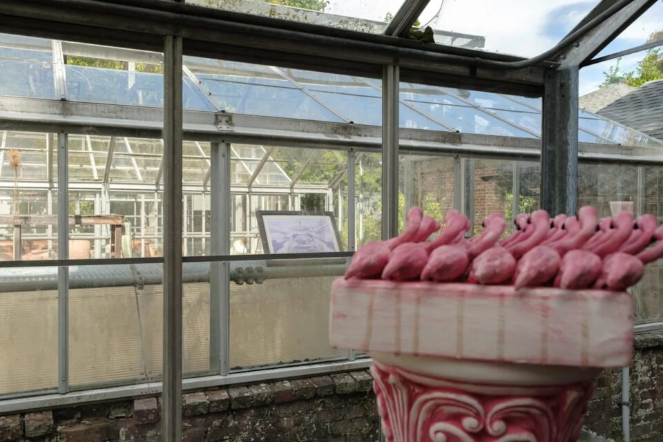 According to Pinheiro, unlike the conventional “white cube” of most galleries, these old glasshouses are off-limits for entry; instead, art will be positioned along the perimeter windows, transforming the viewing into a winding, curiosity-driven wander along uneven, cobblestone paths.