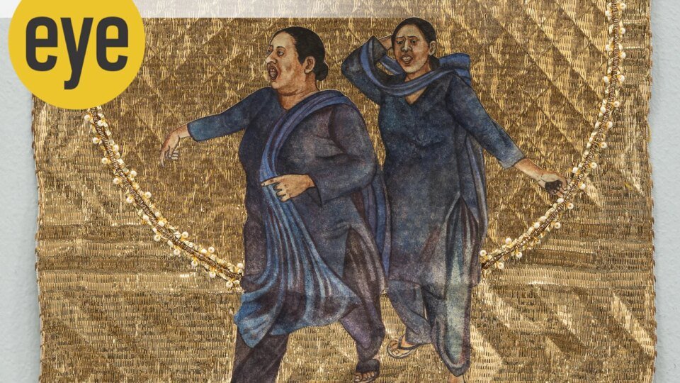 Then there is Varunika Saraf’s 2020 series, Jugni. On her canvas, women appear with a god-like halo rendered in embroidery as she spoofs the Russian icons of Madonna and Child. The series was prompted by the then Chief Justice of India’s remark questioning why women and children were present at protest sites during the 2019–20 farmers’ agitation in Delhi.