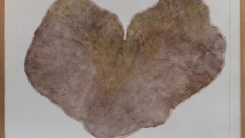 “The paper is laid on top and becomes embossed with the 3D shape of the wood and tree rings, which are the embodiment of the landscape in tree cellular form. It’s taken several hours, and my muscles are definitely aching after the effort – but, now that the series of prints are complete, I am pleased and proud of my work.