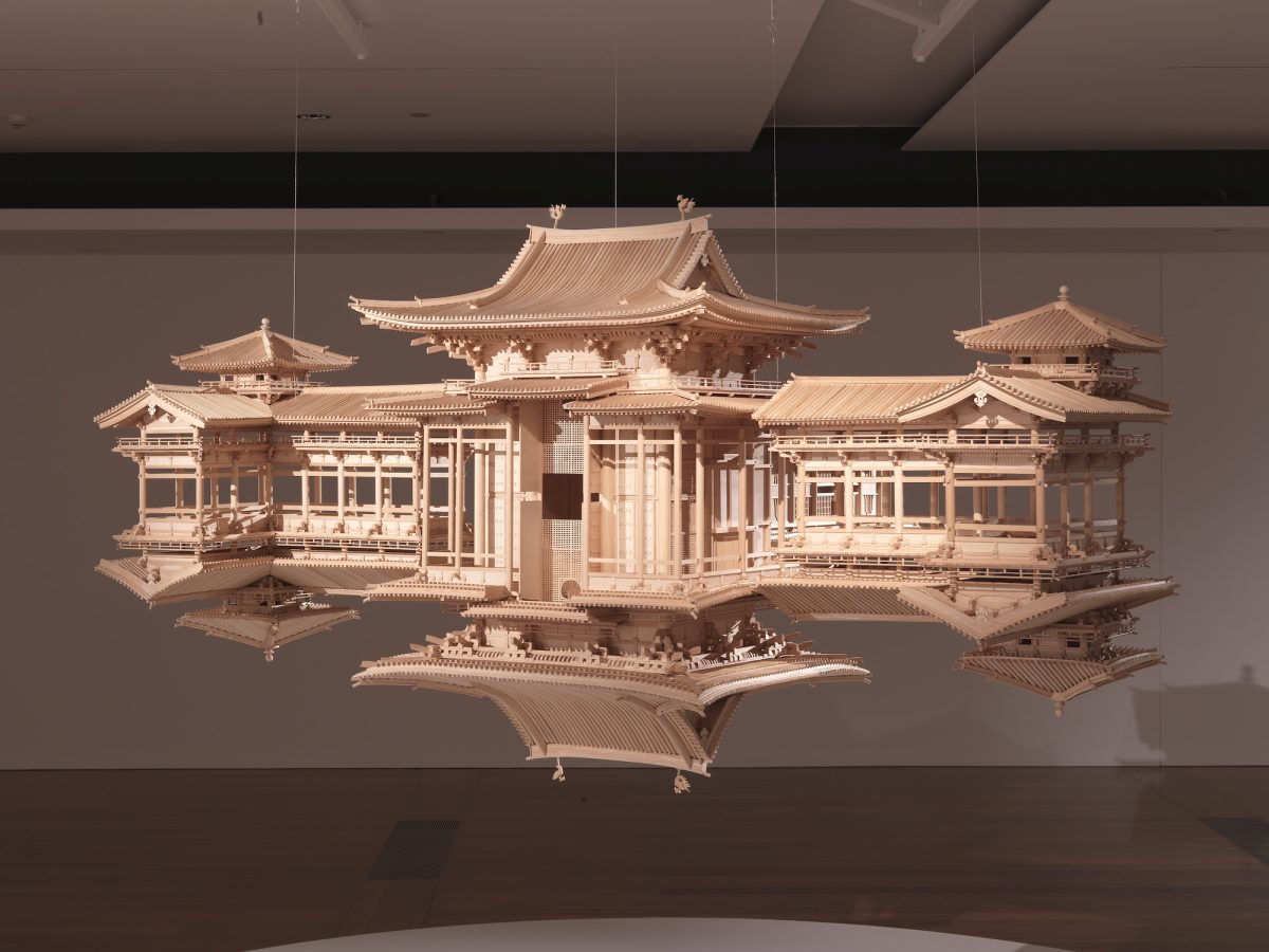 The exhibition’s final section, Evolving Faith, will focus on spirituality and religion in contemporary art across the region. Exploring relationships between the sacred and the secular, artists in this section will demonstrate how belief systems intersect with systems of power and the everyday. Key works will include Nomin Bold’s 2012 painting, Labyrinth game, which utilises elements of Tibetan Buddhist thangka (scroll) painting to capture the complex urban landscape of Ulaanbaatar in Mongolia, and Montien Boonma’s monumental sculpture Lotus sound (1992), a celebrated work inspired by the temple grounds of Wat Phra That Doi Suthep in Chiang Mai. Enchanted by the temple’s chiming bells and blooming lotus flowers, the artist alludes to symbols of wisdom and enlightenment in Buddhist philosophy. Nearby, Takahiro Iwasaki’s three-metre-long suspended sculpture, Reflection Model (Perfect Bliss) (2010–12) – constructed from Japanese cypress to mirror its architectural inspiration, the sacred Phoenix Hall in Japan’s By?d?-in Temple complex – will close the exhibition.