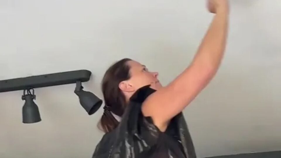 In the video, her mum could be seen painting their council house kitchen ceiling.