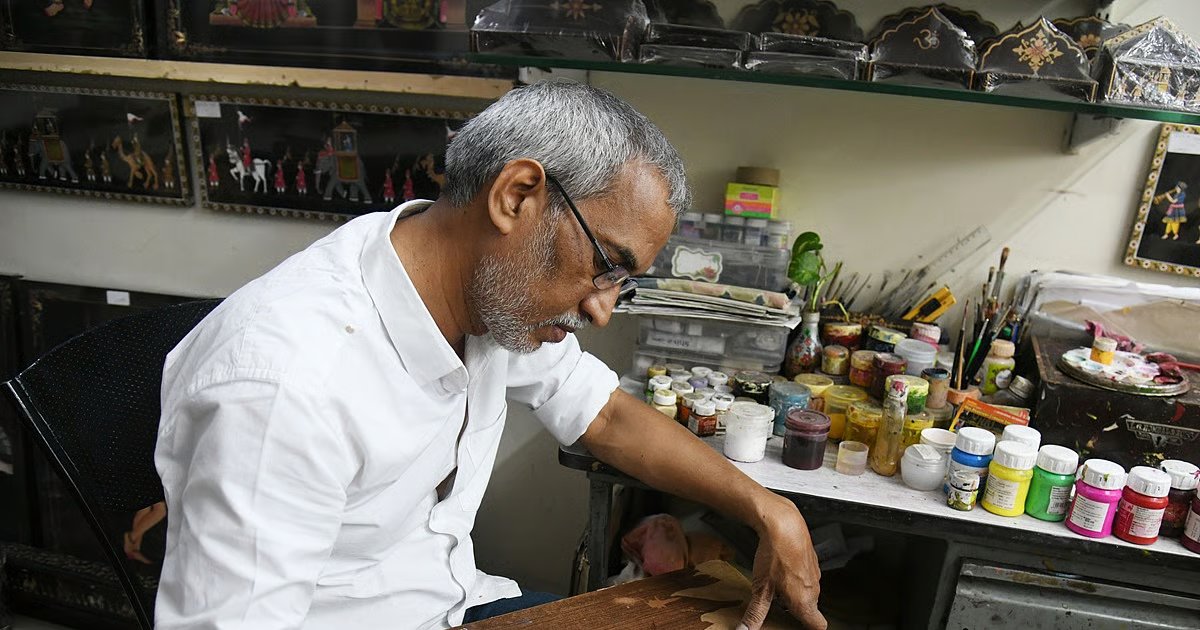 “Nirmal painting began around 400 years ago during the Nizam era and was recognised even then,” Hakeem explains, adding, “In the early days, natural colours extracted from leaves and flowers were used. The boards were made using tamarind seeds, and completing a single artwork would take months, but the quality and detailing were exceptional.”