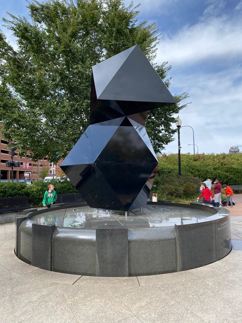 BOSTON—The abstract sculpture’s annual reconfiguration took place on Sunday, October 13 at Armenian Heritage Park on The Greenway in Boston, Massachusetts. The two halves of the split rhomboid dodecahedron were pulled apart by a crane and reconfigured to create a new sculptural shape, symbolic of a new life. The reconfiguration tells the story of all who pulled away or were forced to pull away from their country of origin and came to the Massachusetts shores, establishing themselves in new and different ways. The abstract sculpture is dedicated to the lives lost during the Armenian Genocide of 1915-1923 and all genocides.