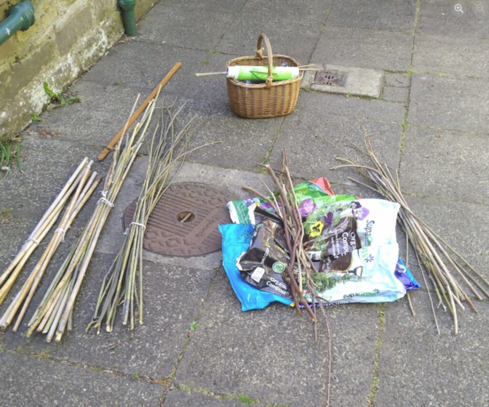 The group is currently meeting on Saturdays in the meadows to create the art, using parts which they would usually recycle in the community garden, including sticks and withies.