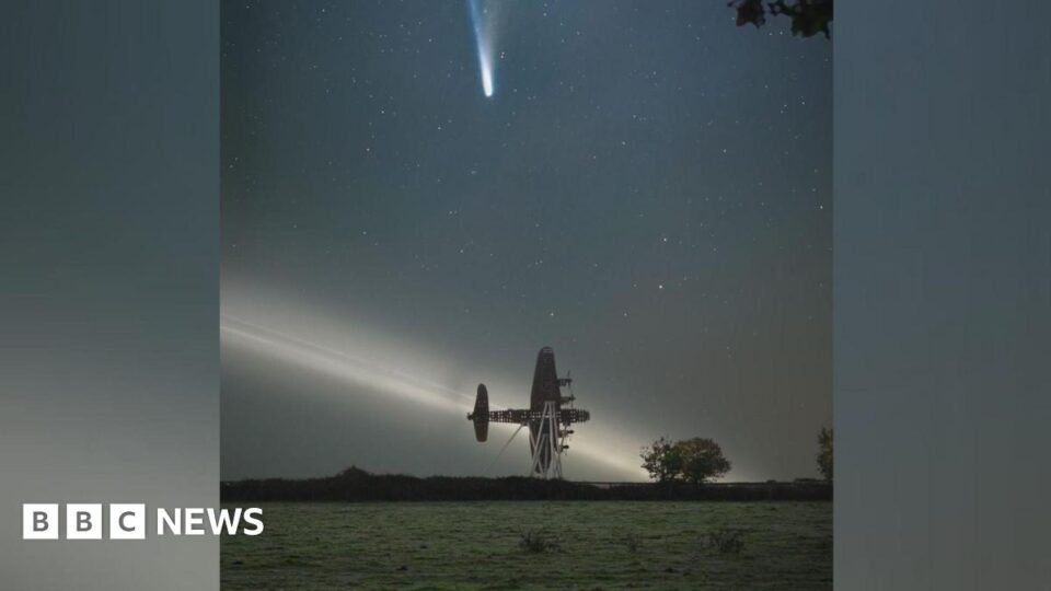 A photographer says he feels “very lucky” to have captured Comet C/2025 A6 as it appeared over the Lancaster bomber sculpture in Norton Disney.