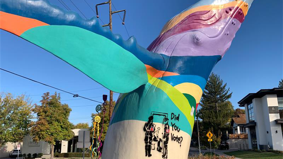 SALT LAKE CITYThe 9th and 9th neighborhood in Salt Lake City awoke Wednesday to find a prominent whale statue had been graffitied with an apparent political message just days before the national election.