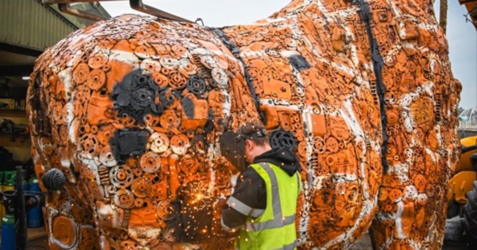 The towering figure, set to stand in the British Ironworks Centre’s sculpture park, dwarfs the previous record-holder: a 2.4-meter giraffe at Edinburgh Zoo.